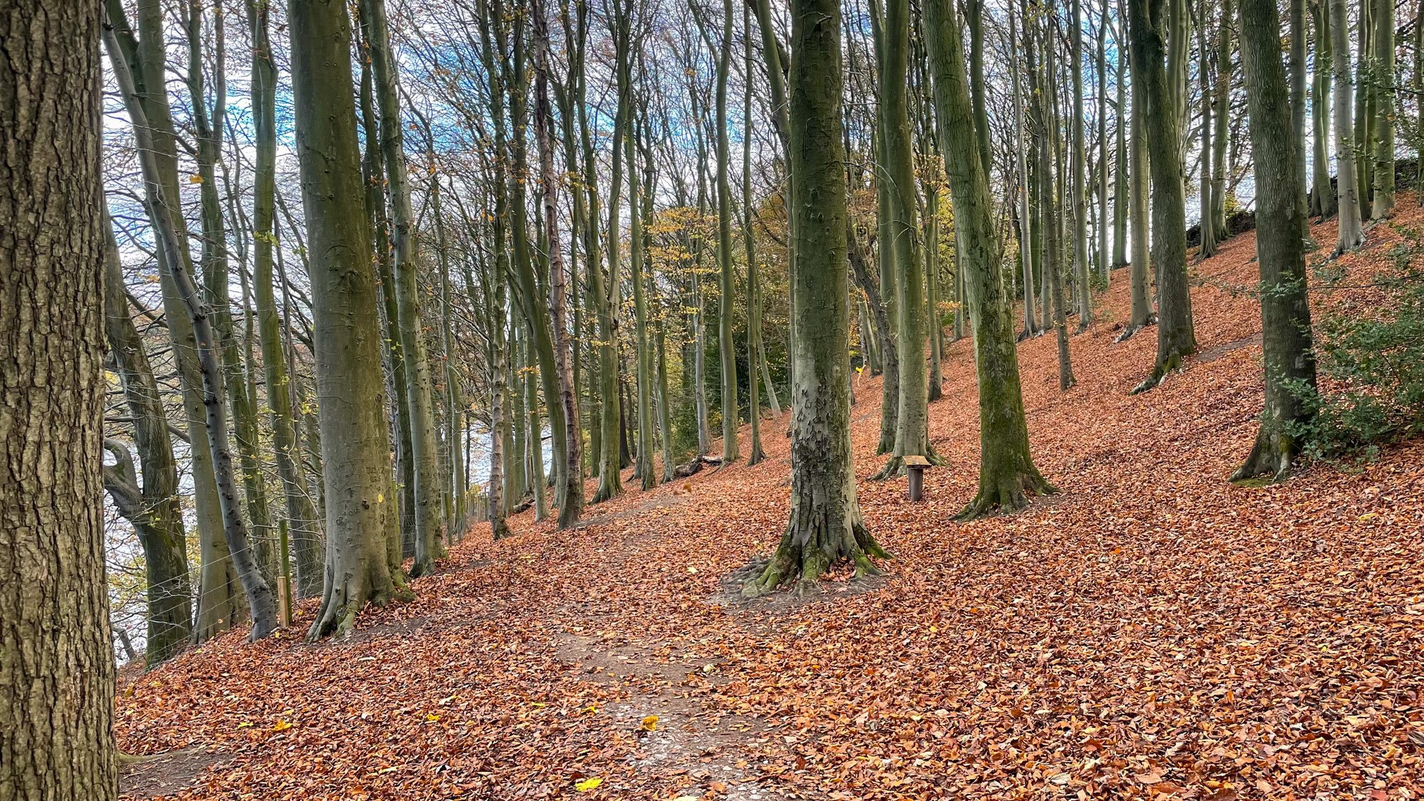 Wildlife adds interest as you go. We spotted grey squirrels weaving through the trees and a heron standing motionless at the water’s edge. In spring, bluebells spread across parts of the woodland floor, changing the feel of the place without disturbing its quietness.