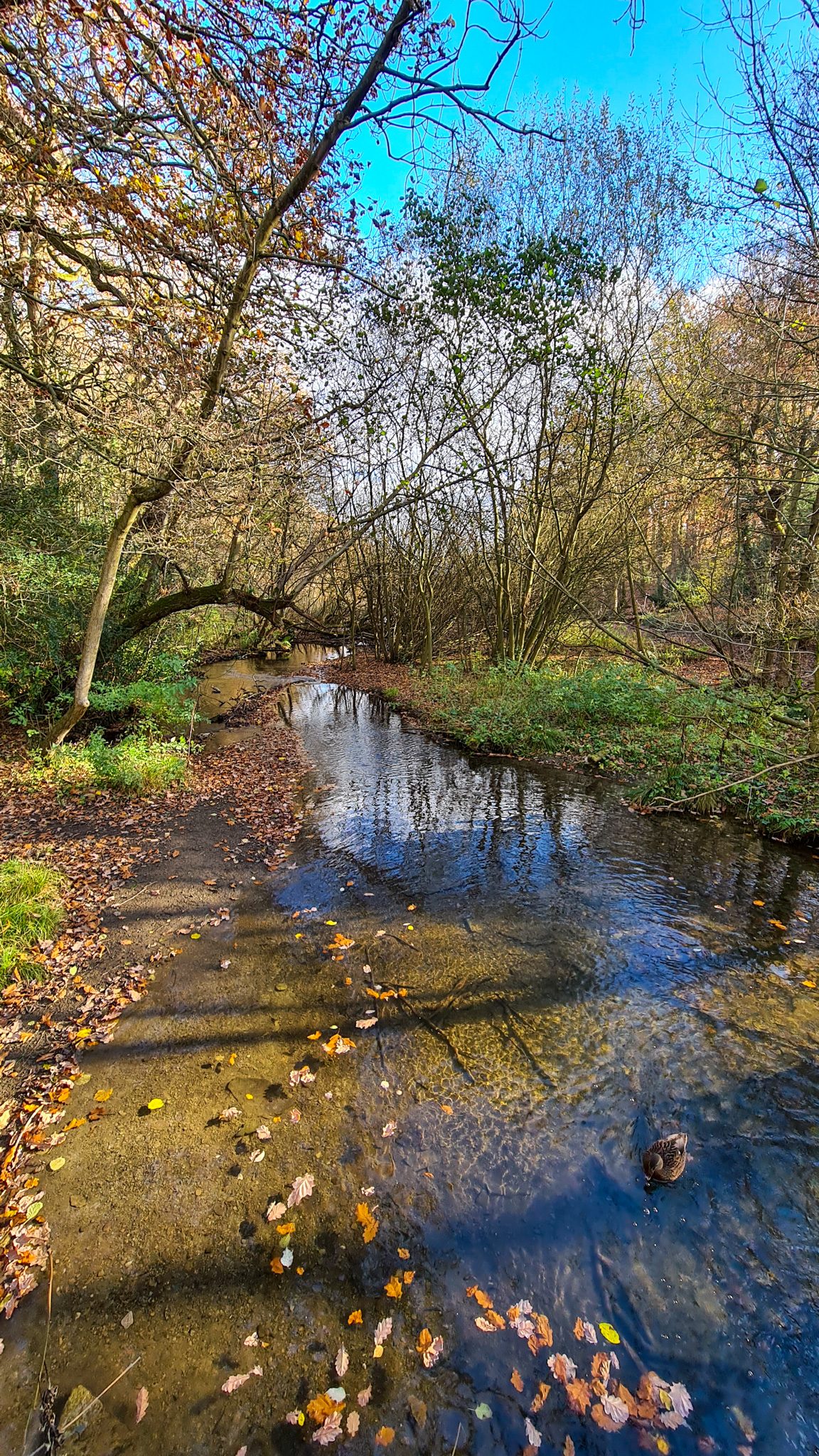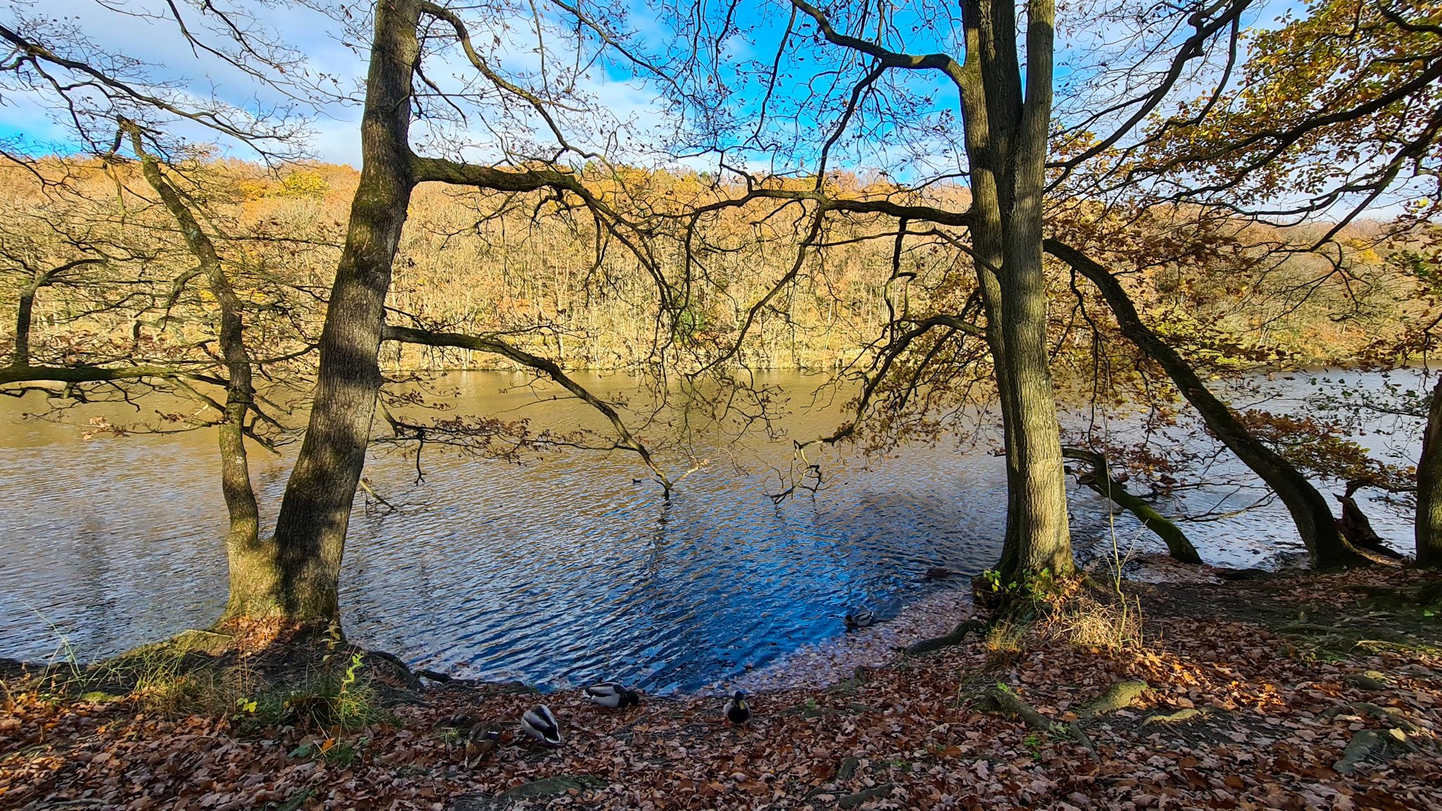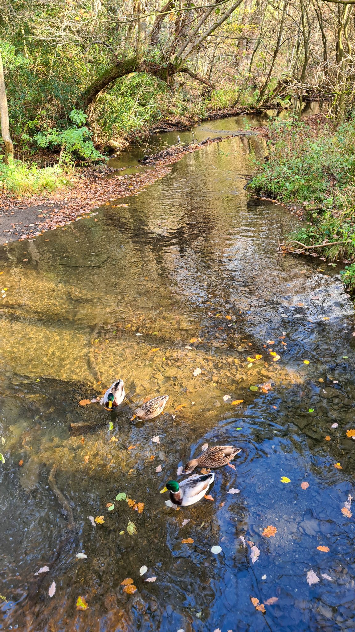 The woodland supports nuthatches, woodpeckers, and, if you’re fortunate, tawny owls. Ducks and geese move across the water, and there’s often something shifting in the trees as you walk.