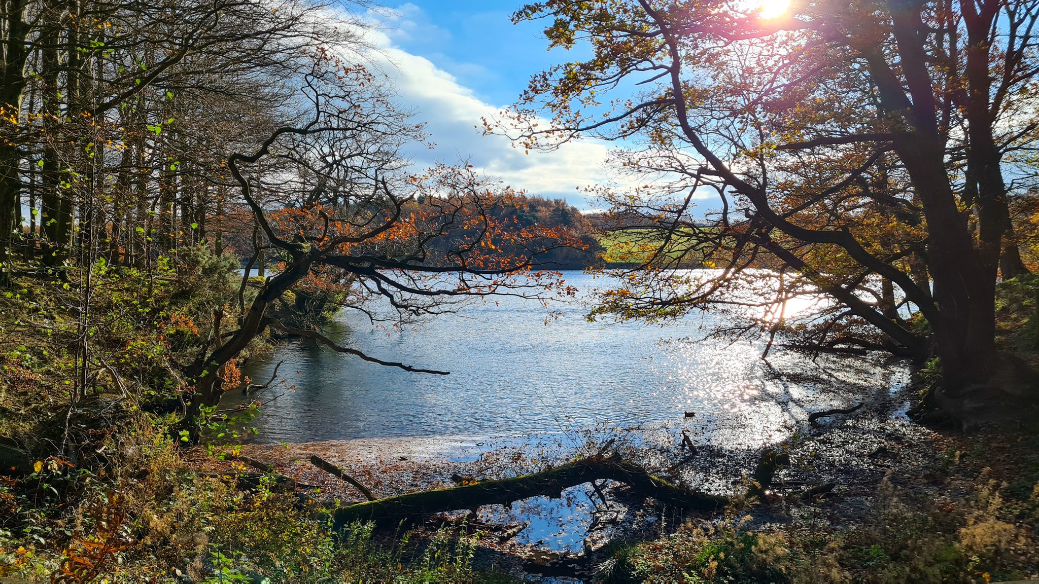 The air always seems a touch cooler by the water. In summer the woodland is thick and green, while autumn brings dry leaves across the paths and a quieter, softer feel. The reservoir itself is calm, edged by tall pines and mixed woodland, with bird calls carrying easily across the water.